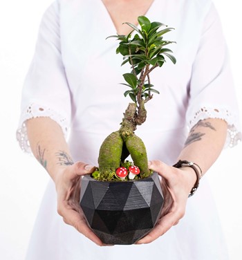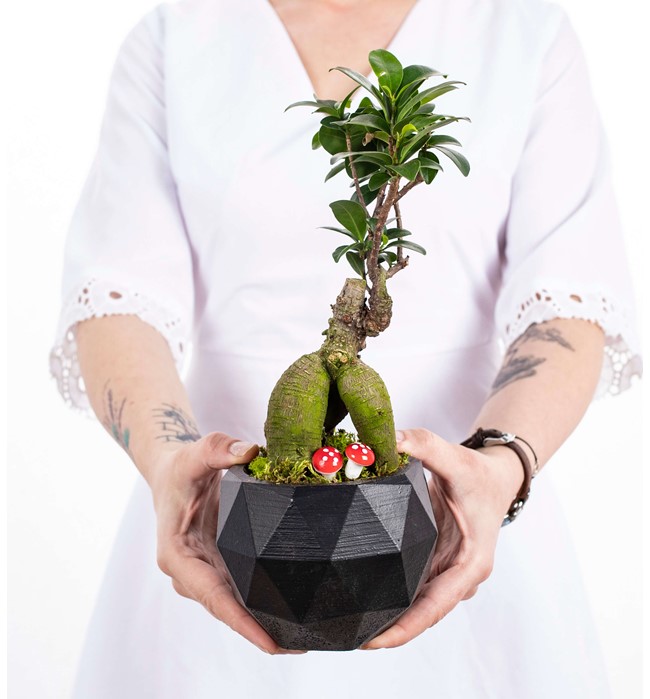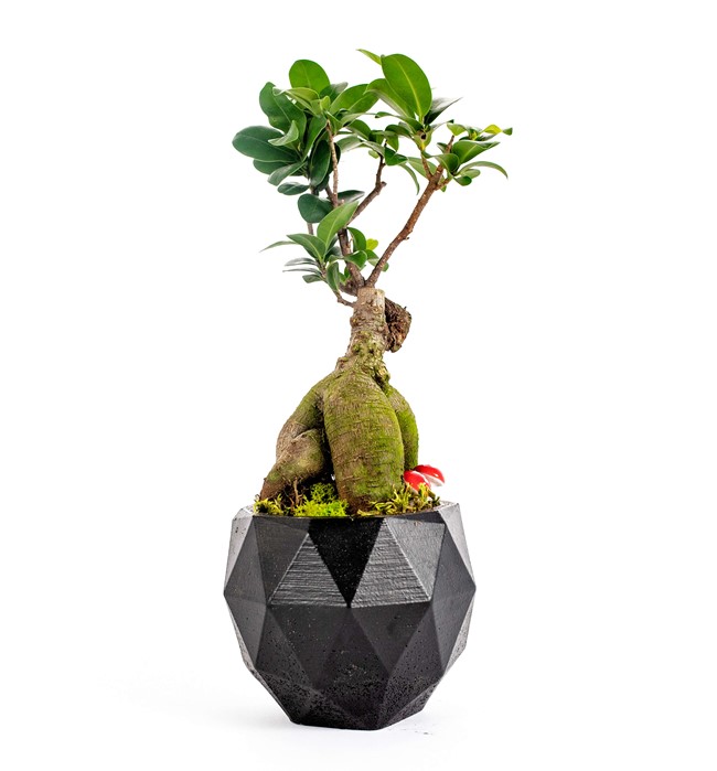 Geometrik Saksıda Ficus Ginseng Bonsai Tasarım - Black