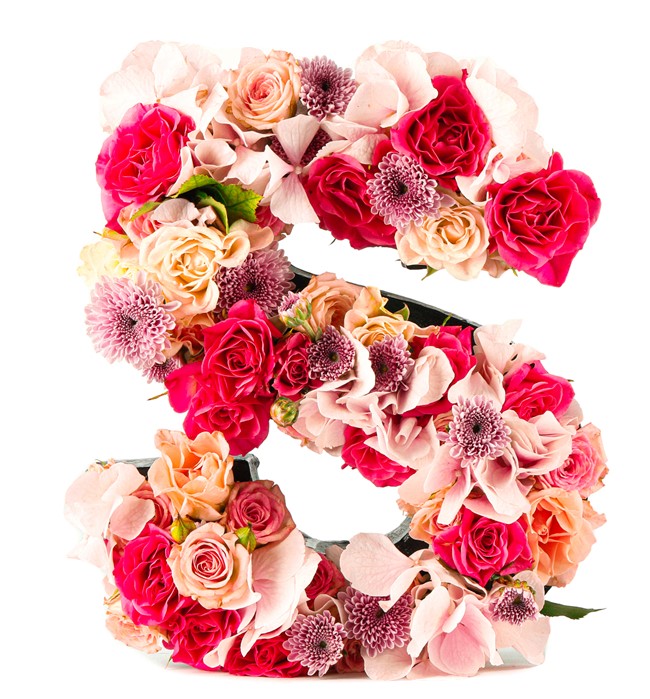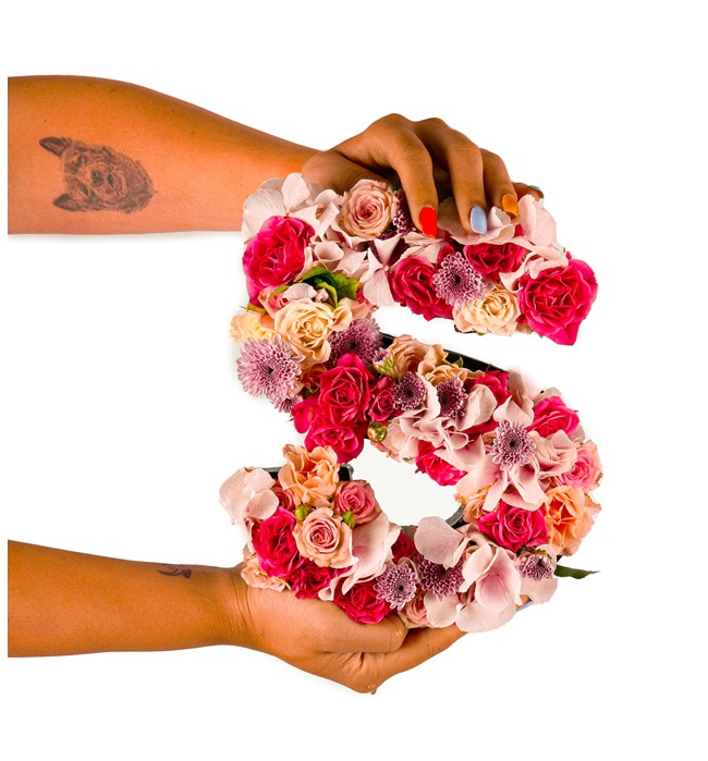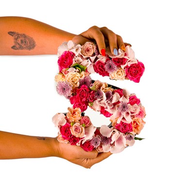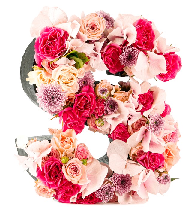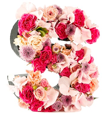 Özel üretim harf saksı içerisinde small güller ve ortancalar kullanılmıştır.