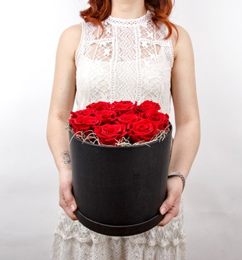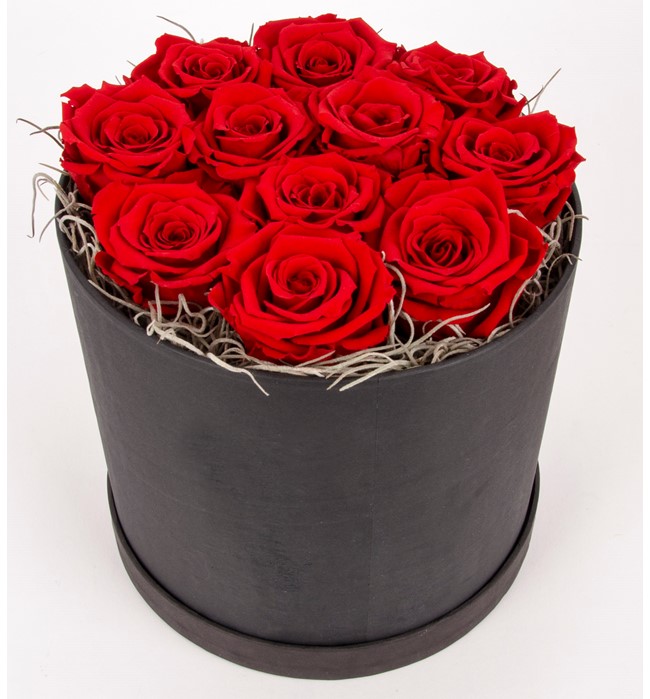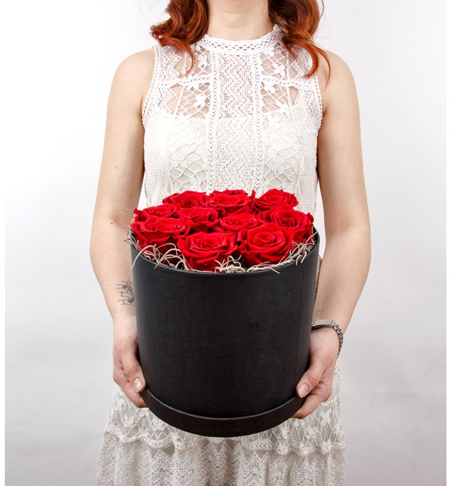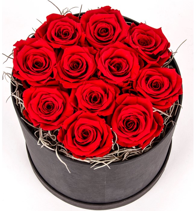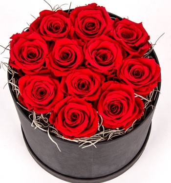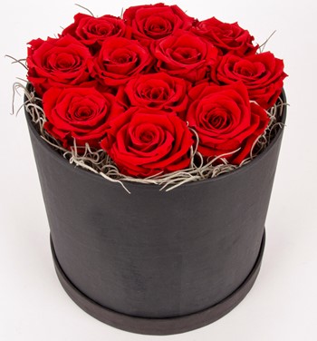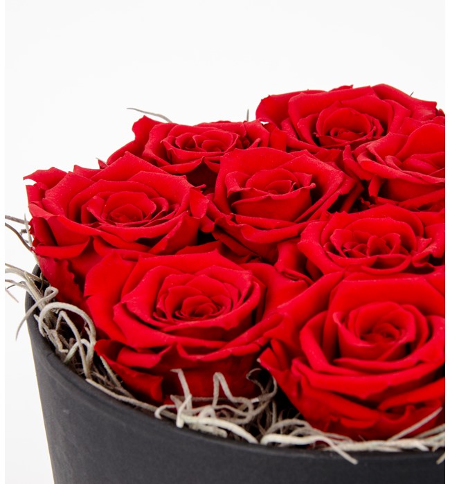 Özel üretim 20x20 cm ölçülerinde kaplama kutu içerisinde güllerin büyüklüğüne göre 11 adet kırmızı XL solmayan ekvator gülleri kullanılmıştır. Bakımı hakkında: Gerçek ekvator güllerinden elde edilen ''Solmayan Gül" herhangi bir bakıma ihtiyaç duymadan su, güneş ve direkt temastan uzak tutulduğu sürece yaklaşık 2 yıl canlılığını korumaktadır.