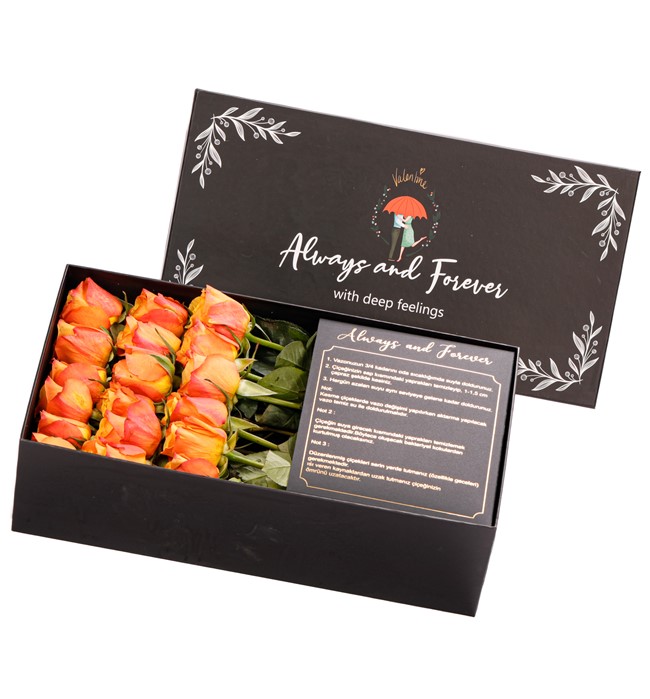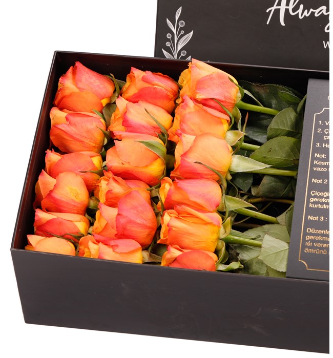 Love Of My Life! O'na aşk ve sadakatinizin mesajını gönderin! Kutu içerisinde 18-21 adet (O hafta gelen güllerin büyüklüğüne göre değişebilir, çünkü en taze güller ile hazırlanır, çok iri kafalı güllerde 7 adet yan yana sığmamaktadır) turuncu gül kullandık. Özel bir tasarım olması açısından sınırlı sayıda hazırladık.