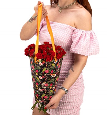 Özel taşıma çantasında mini kırmızı güller ile hazırlanmıştır.