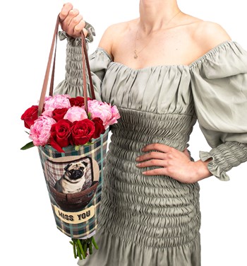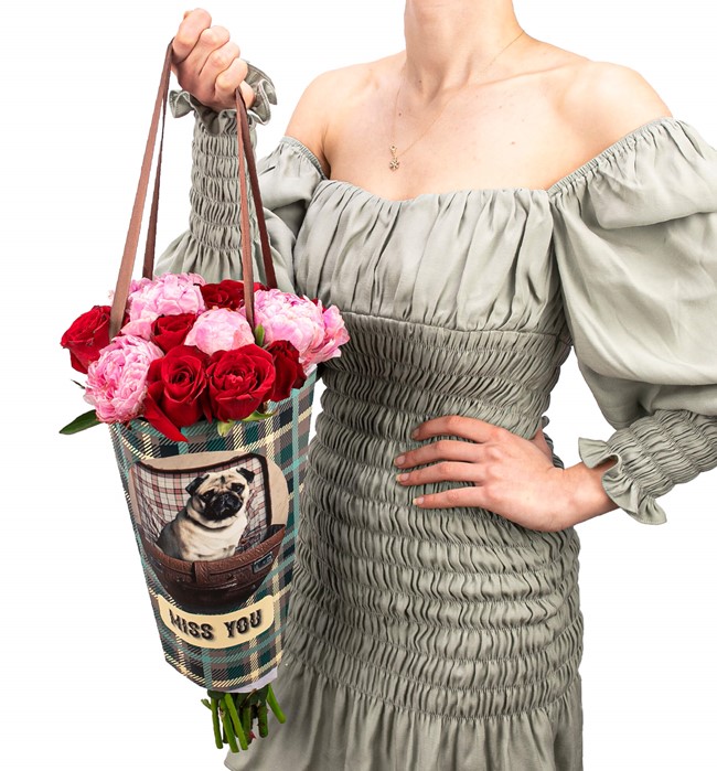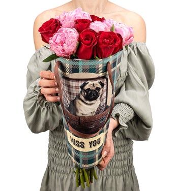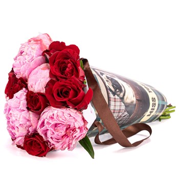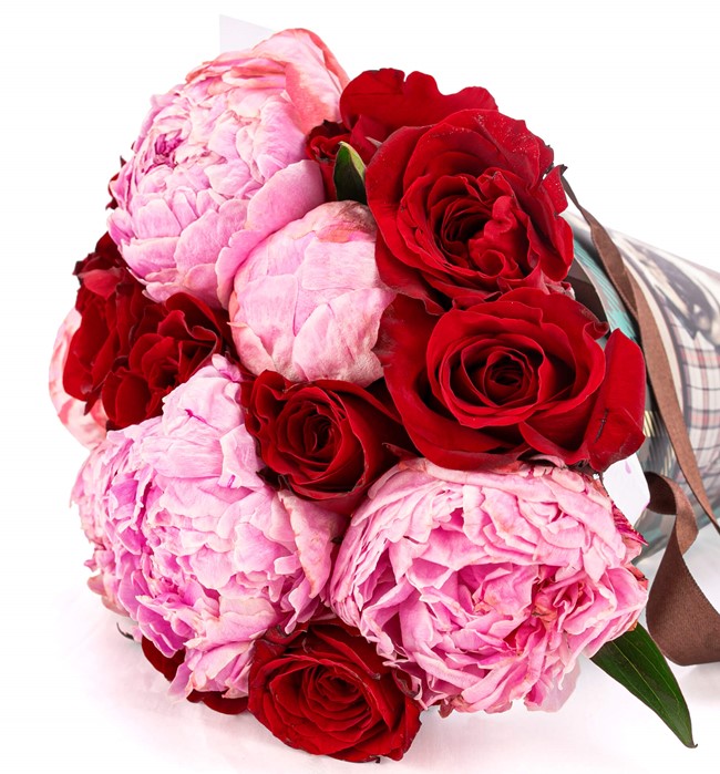 Kırmızı ekvator gülleri ve şakayıklar ile tasarlanmıştır.