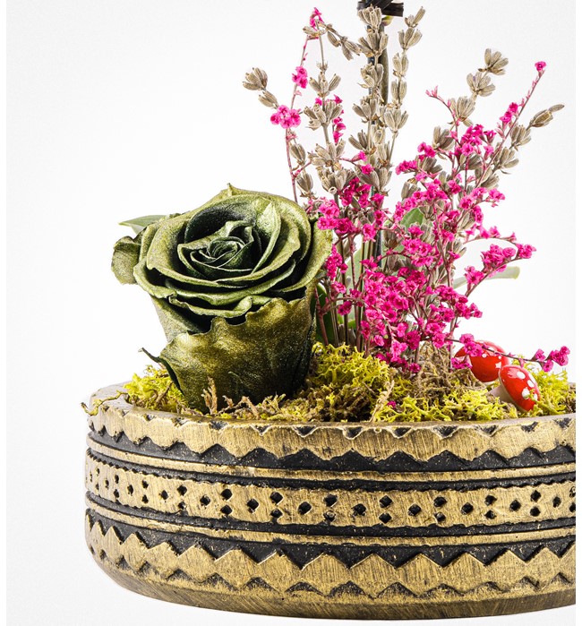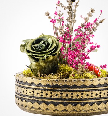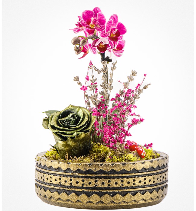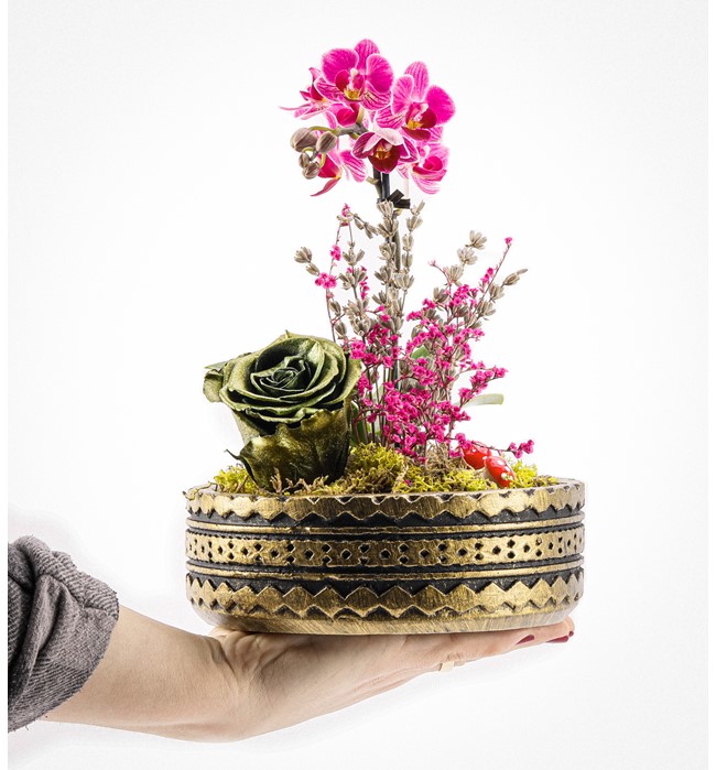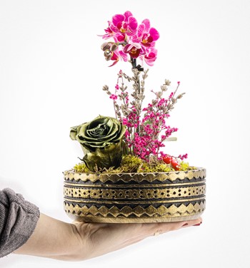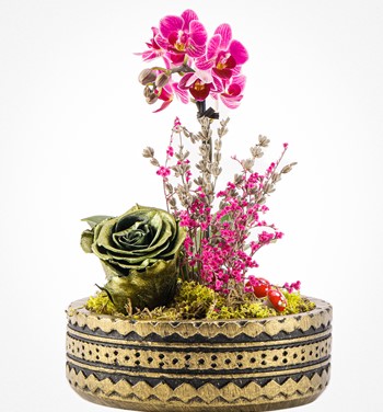 Ring Serisi Mini Orkide ve Silver Green Solmayan Gül Tasarım